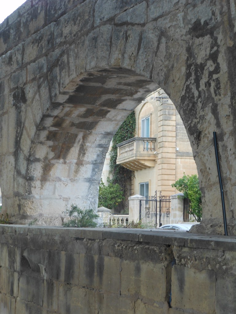 L’aqueduc de WIgnacourt (du nom du Grand Maître de l’Ordre de malte qui le fit construire ; entre 1586 et 1615). Cet aqueduc apporta l’eau jusqu’à La Valette, à partir d’une source proche de Rabat, au centre de l’île. – Plus d’infos sur WIkipédia : Wignacourt Aqueduct