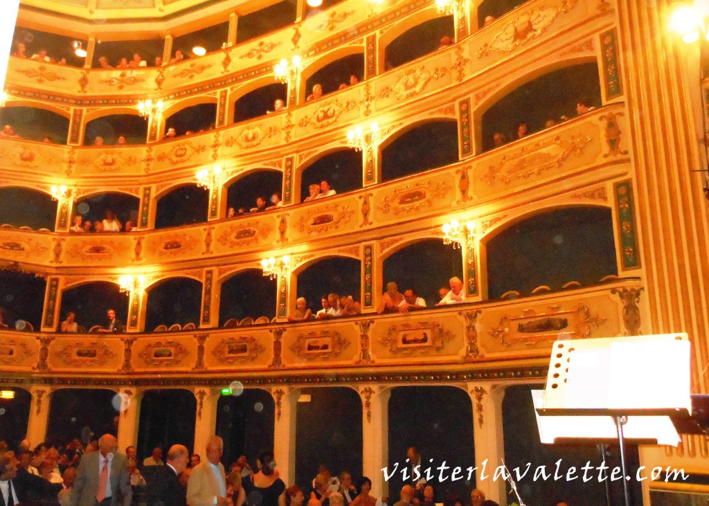 « À l’époque, l’île de Malte est administrée par l’Ordre des chevaliers du même nom. Or, cet ordre militaire et religieux commence à manquer de discipline ! Les jeunes hommes qui en font partie préfèrent le divertissement – voire la débauche – à leurs missions premières de défense du pays et de soin des malades. Cela met hors de lui le grand maître de l’Ordre, António Manoel de Vilhena. Mais il a heureusement la solution : créer un théâtre public. – En effet, plutôt que de supprimer les divertissements, il décide de les encadrer par un établissement officiel. Et pour faire bonne mesure, le peuple y est aussi admis : c’est la première fois que l’art théâtral et musical va être accessible à tous. – Vilhena ne traîne pas : après seulement dix mois de travaux, le théâtre, richement décoré et à l’acoustique parfaite grâce à sa salle en U, accueille déjà sa première représentation en janvier 1732. Et le succès est là : si les chevaliers jouent eux-mêmes certaines pièces, on fait aussi appel à des troupes européennes réputées. » …